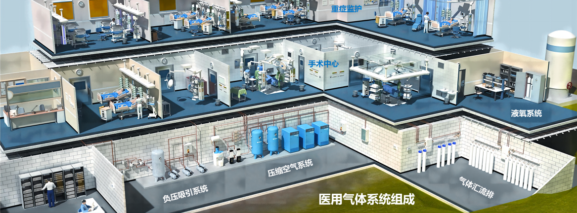 ? 液氧站、匯流排組成::由液氧罐(儲(chǔ)存液氧)、空溫式汽化器(將液氧氣化成氧氣)、減壓裝置(將壓力減壓至所需要的壓力范圍)和分氣缸(提供氣體緩沖及分氣功能)組成;緊急匯流排氧氣瓶組:一般由10+10瓶組氧氣瓶組成。
